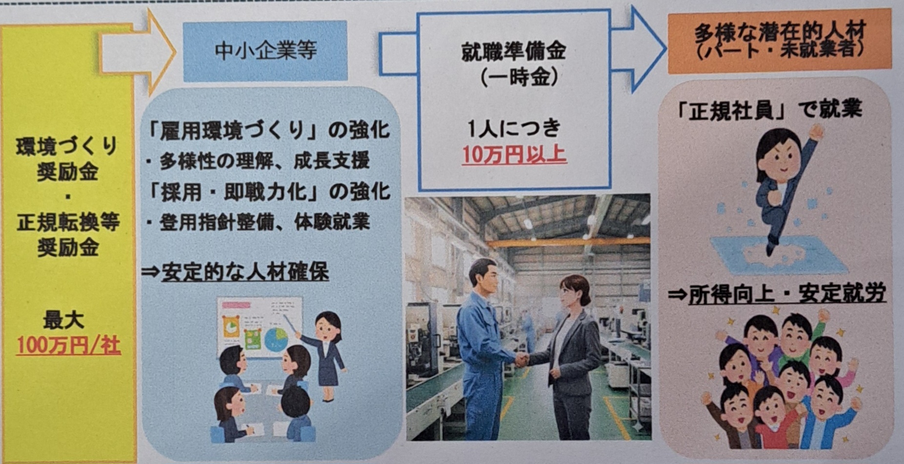 令和6年度に創設した初任給等引上げ応援奨励金については、若年層の賃上げを行った中小企業に対して最大100万円を上限に支援するものです。
