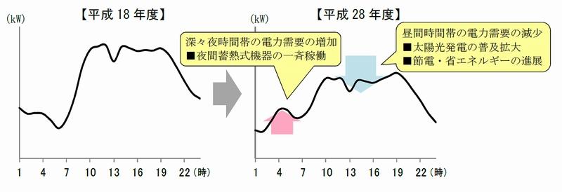 かつて原発を推進していた時は夜の電力がだぶつくので安くしていましたが、もはや原発が増える見込みもなくなりました。深夜の電力を安く売ることはもうできなくなり、昼間の電気は太陽光の増加で安くなってきたと正直に説明されています。