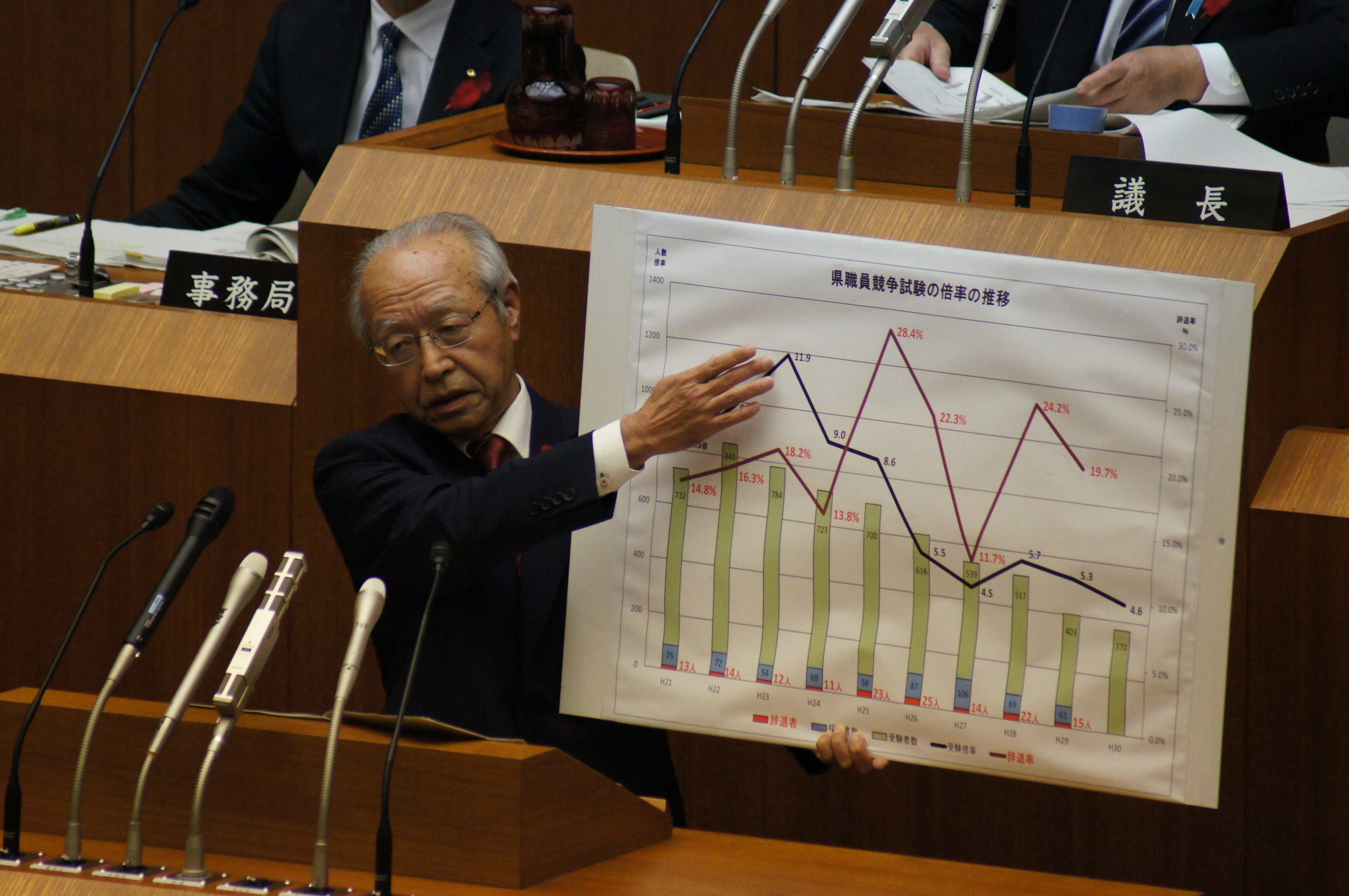 今の県の職員の皆さんは、懸命に働いてくれています。だから、過労死ラインの月80時間を突破している人が90人を超えているし、心身の疲労からの不調者が多くなっているとも聞いています。